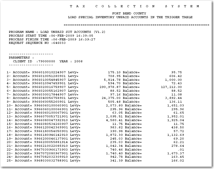 Load Unpaid SIT Accounts to Trigger Table Screen