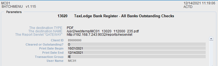 TaxLedge Bank Register - All Banks Outstanding Checks Screen