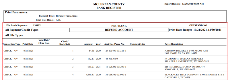 TaxLedge Bank Register - All Banks Outstanding Checks