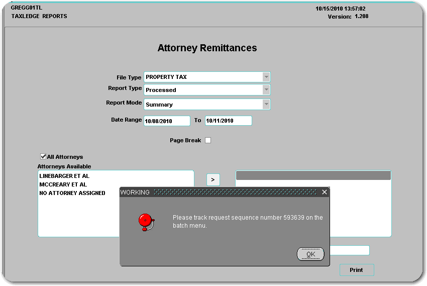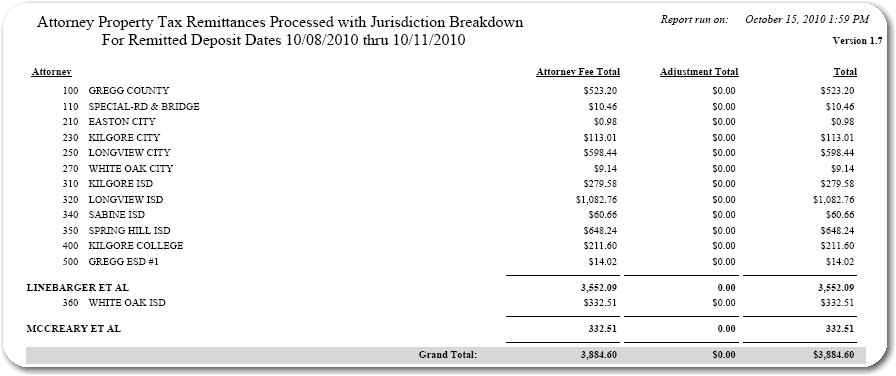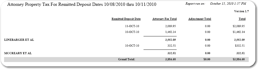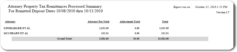 Attorney Remittances Report screen