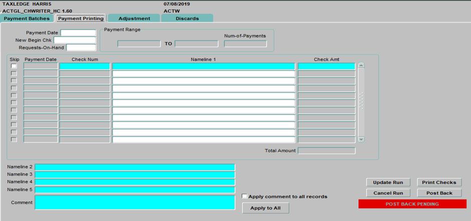 Check Writer screen
