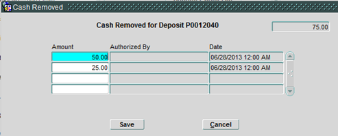 Cash Removed Popup Window