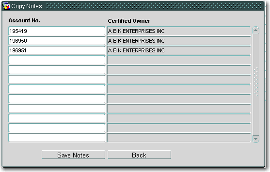 Copy Notes window: